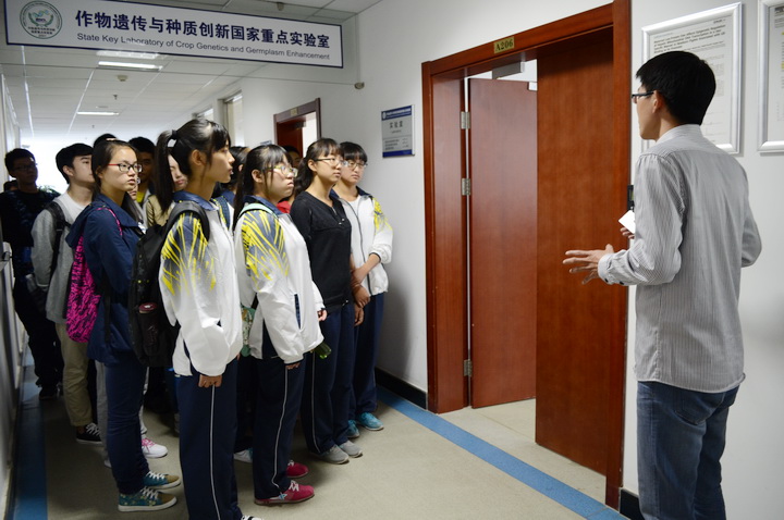首先,同学们来到了理科楼-作物遗传与种质创新国家重点实验室,受到了实验室游老师的热情接待,他引导同学们参观了大型仪器设备,悉心介绍实验室组成,离心机、测序仪、细胞融合仪等仪器的用途等等。