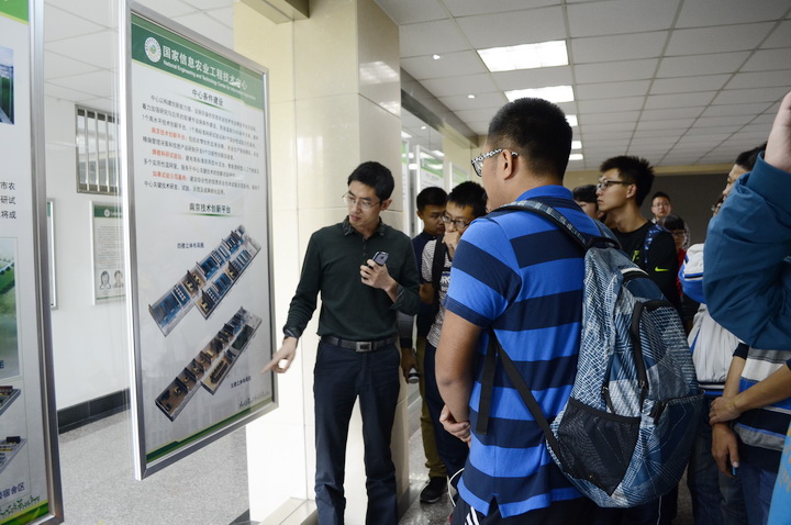 然后同学们参观了国家信息农业工程技术中心的四楼和五楼部分实验室,实验室的两位师兄简要介绍了农情信息检测、农业生产模拟、农业精确管理决策、信息产品研制开发等。