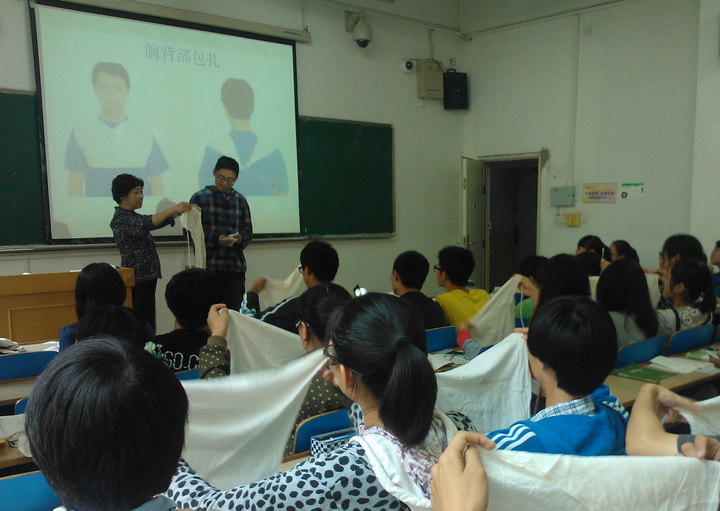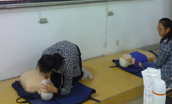 六十余名同学参加本次培训活动,江苏省红会的老师应邀向大家做了专业的急救知识讲座。红会老师就基本急救知识、培养自救和救人能力的重要性以及如何提高自救和救人能力等方面向大家做了重点介绍。讲座中,同学们聚精会神,不时与老师进行互动,表现出了高度的学习激情。之后,大家在老师指导下,模拟急救现场,体验了运用心肺复苏,人工呼吸等方式实施救人的过程。