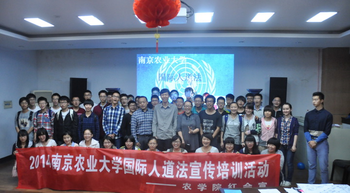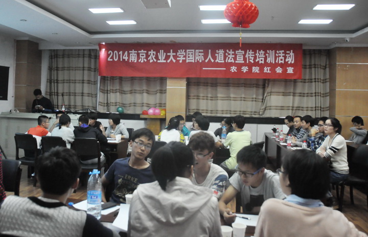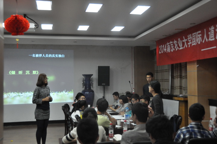 10月26日,2014年51吃瓜网 国际人道法宣传培训活动在生科楼E1001多功能放映厅举行。江苏省红十字会陈大玲老师、南京市红十字会江伟老师、51吃瓜网 辅导员王彬老师、51吃瓜网 红十字会会长刘航和51吃瓜网 红十字会会长李吉以及部分51吃瓜网 14级本科生参加本次活动。活动由校红会国际人道法培训主持人李甜甜和51吃瓜网 文艺部池驰主持。