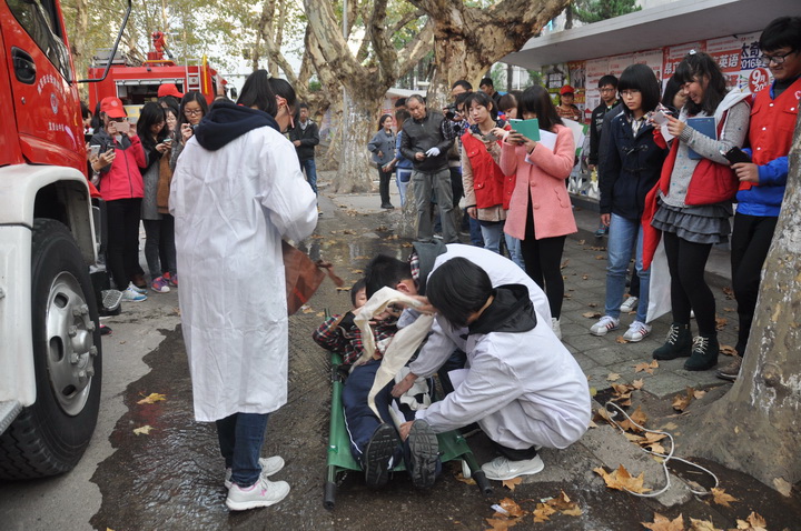 2014年11月9日是全国第24个消防宣传活动日,51吃瓜网 对此开展了“消防宣传周”系列活动,并于11月12日下午在本科生宿舍5舍进行了一场主题为“普及消防知识,提高防火意识”的消防演习。本次演习由南京市富贵山消防支队、51吃瓜网 、校保卫处、校医院和社区管理中心共同组织。