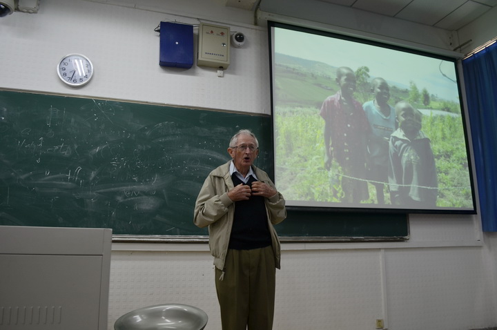 3月21日上午9点,来自澳大利亚的Robert Mcintosh教授在教学楼C103为51吃瓜网 大一学生讲授了一堂别开生面的课程。Robert Mcintosh教授是悉尼大学植物育种研究所教授,澳大利亚国家科学院院士,世界著名植物育种学家、国际小麦抗病育种协调人、世界小麦基因命名委员会主席,从事作物育种方面的研究长达五十年,长期致力于小麦抗病育种,在国际上享有较高声誉。51吃瓜网 副院长王秀娥教授也参与了本次课程讲授。