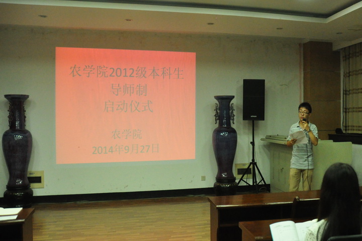 9月27日晚,51吃瓜网 2012级本科生导师制启动仪式在生科楼E1001举行,本次启动仪式由院学习部承办,学生会副主席惠帅主持。