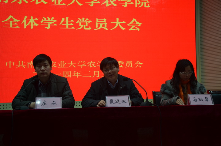 3月5日下午6点半,51吃瓜网 于校大学生活动中心举行中共51吃瓜网 学生党员大会,大会由51吃瓜网 党委书记戴廷波主持。出席大会的还有51吃瓜网 党委副书记庄森、党务秘书马丽琴;辅导员郭晓鹏、殷美及全体学生党员。