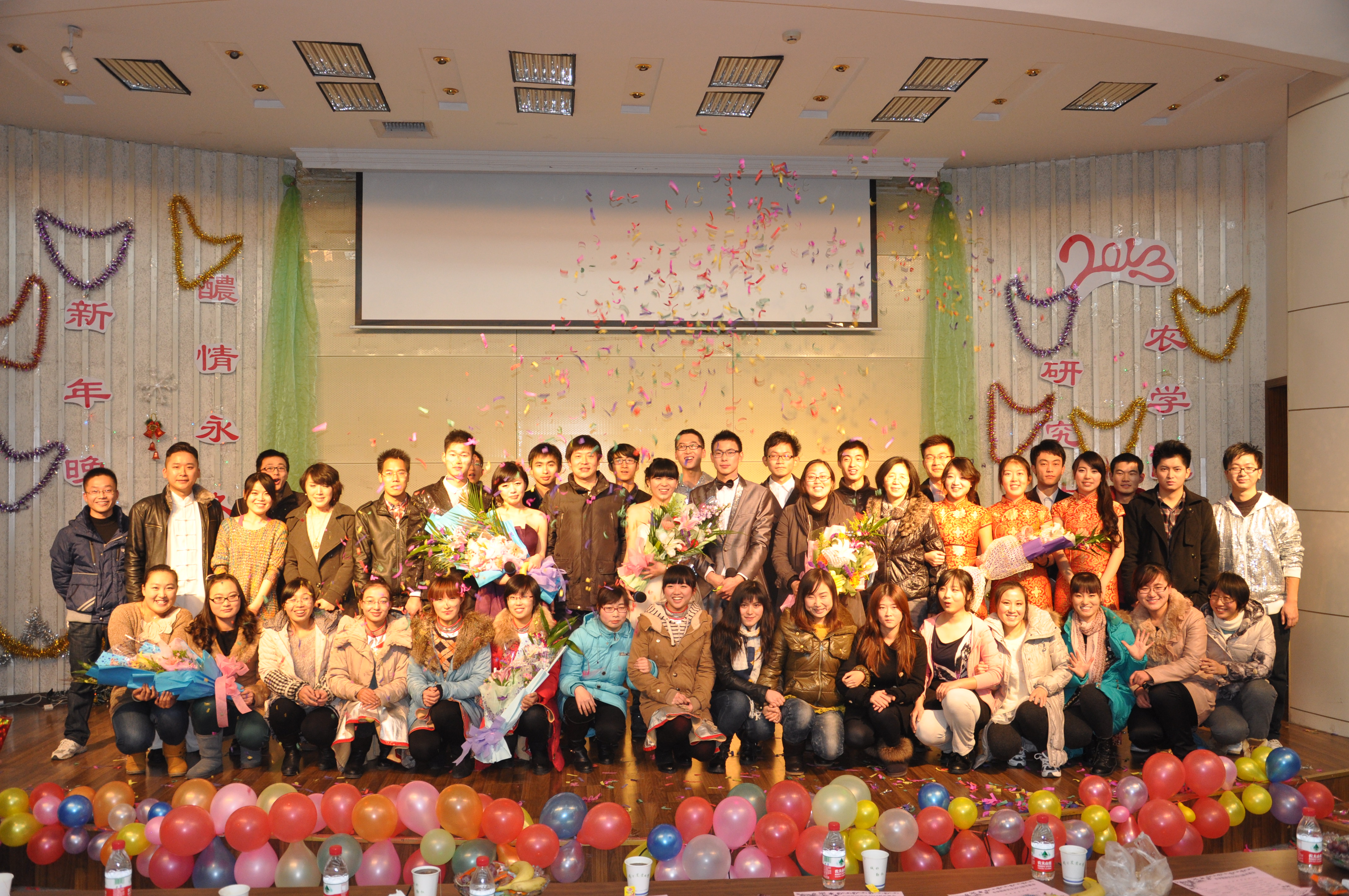 晚会节目交相辉映,在现场掀起一个又一个的高潮,台下掌声此起彼伏。心愿墙及现场抽奖游戏更是将晚会推向高潮。研究生各班级同学则用不同方式表达了他们在新年对学院、对老师和同学们的祝福。