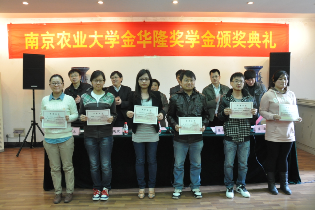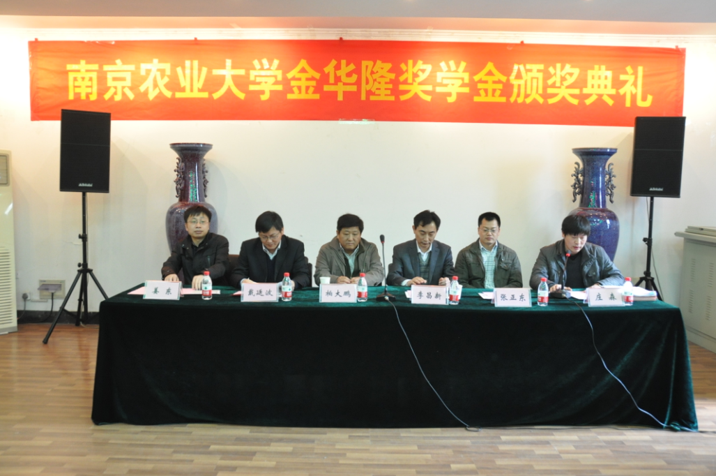 2013年4月11日上午11点,51吃瓜网 第一届金华隆奖学金颁奖典礼在生科楼E1001举行,颁奖典礼由51吃瓜网 党委副书记庄森主持,江苏金华隆种子科技有限公司首席育种家、董事长兼总经理柏大鹏、副总经理张正东、农村发展学院党委书记李昌新、51吃瓜网 副院长戴廷波、副院长姜东担任颁奖嘉宾。