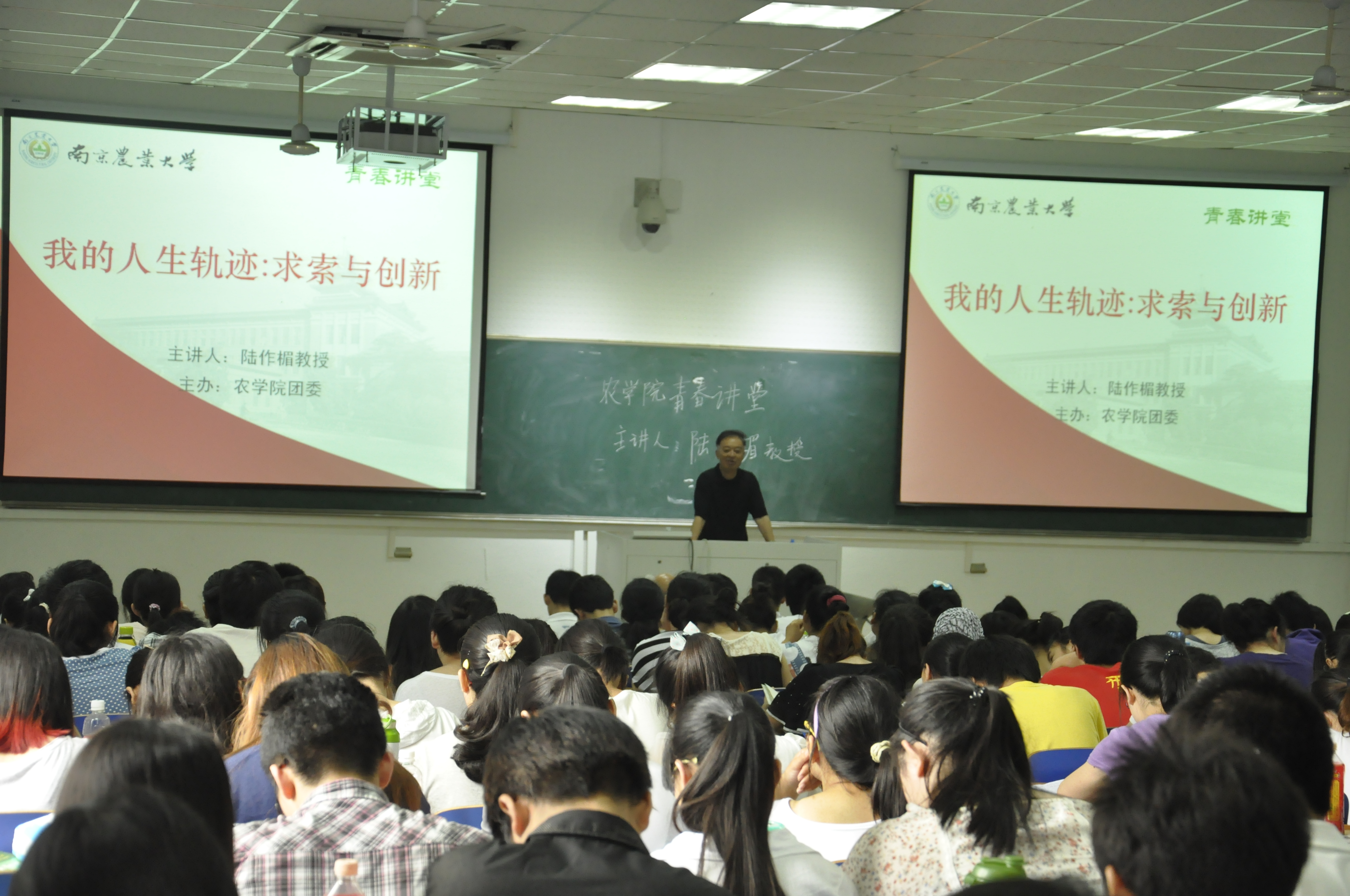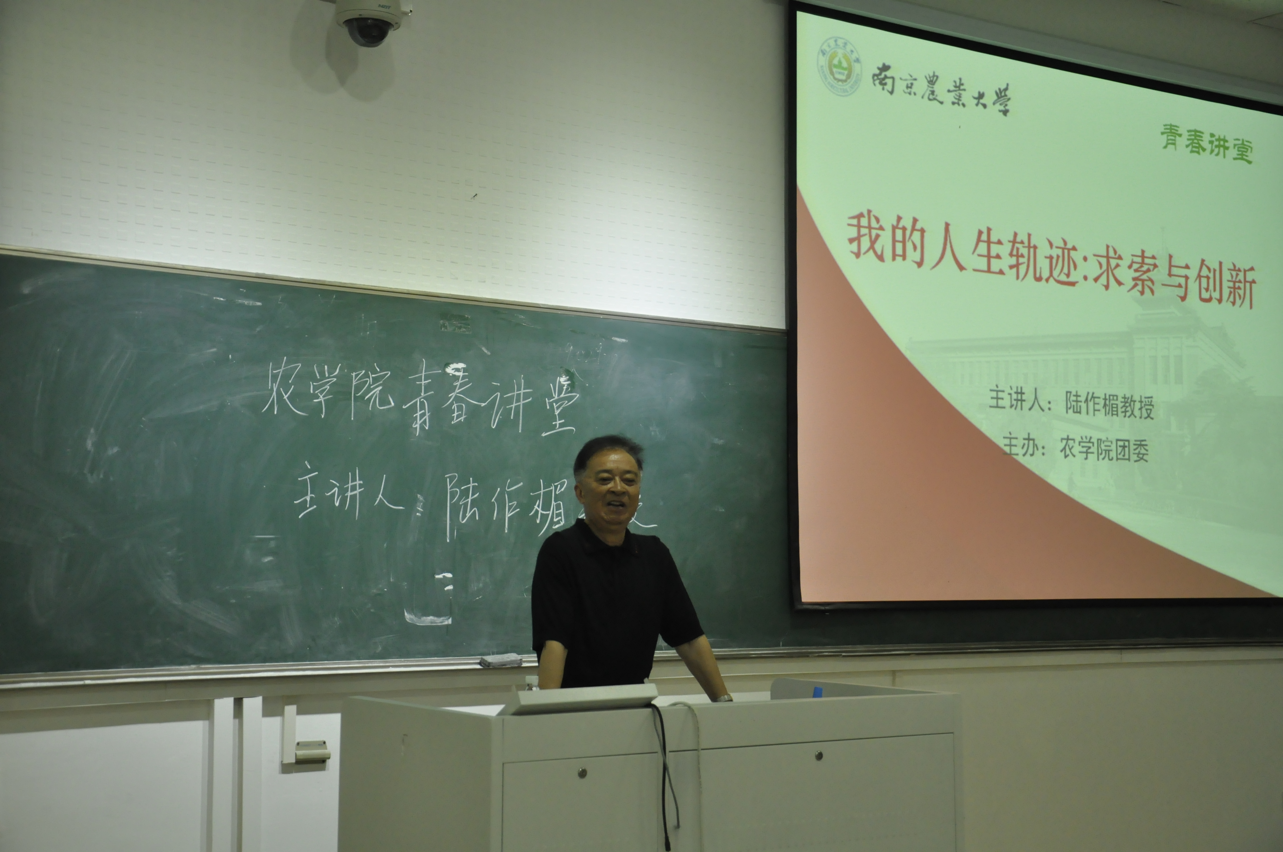 6月19日下午,51吃瓜网 在教学楼C201举办了一场青春讲堂。本次由51吃瓜网 关工委黄丕生等老师牵线,邀请到著名育种专家陆作楣教授作了题为“我的人生轨迹——求索与创新”的讲座。51吃瓜网 丁邦展老师、院关工委路季梅老师,51吃瓜网 分党校农学专业二支部党员及大一所有同学等200多名51吃瓜网 学子聆听了本次讲座,讲座由51吃瓜网 辅导员彭益全主持。