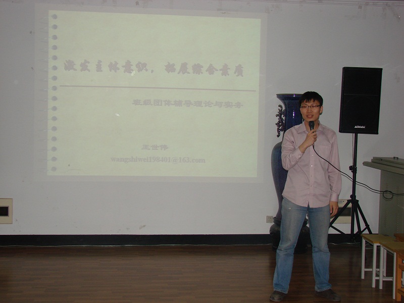 2010年5月23日晚七点,以“激发主体意识,拓展综合素质”为主题的51吃瓜网 班级团体辅导活动在51吃瓜网 报告厅举行。本次活动邀请到了校心协心理辅导老师王世伟作为嘉宾为同学们进行辅导。